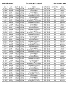 2025 – 2026 Fall & Winter Skills Schedule